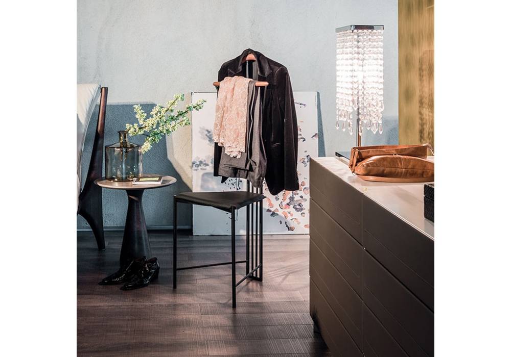 Yannik firmato da Andrea Lucatello per Cattelan Italia è un servomuto con struttura in acciaio verniciato nero opaco e noce Canaletto. Seduta in frassino verniciato nero opaco o con rivestimento in pelle disponibile in diverse finiture.