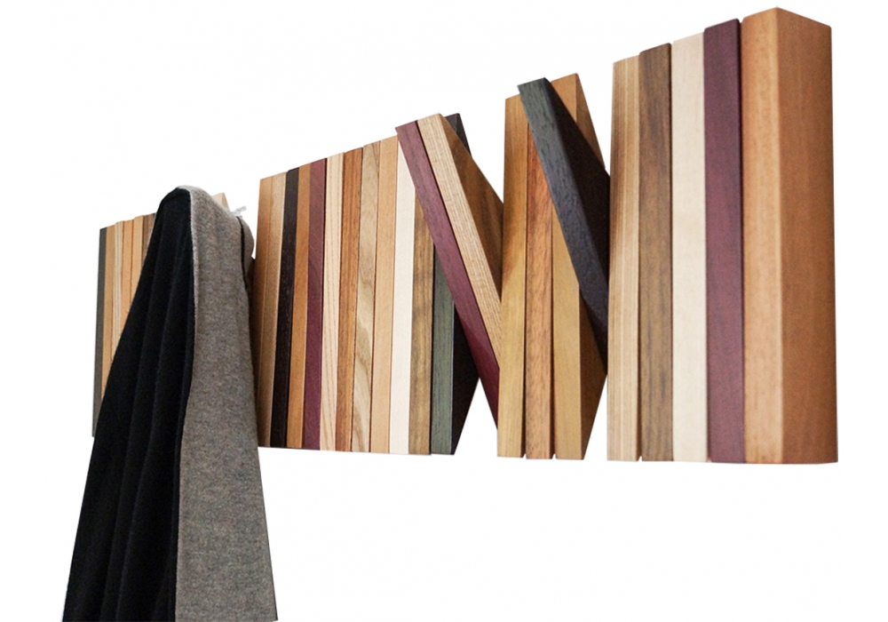 Pantonia Premium disegnata da Yurii Cegla per Ornythos è un appendiabiti. È realizzato con diverse specie legnose: yroko, acero, wenge, castagno, amazzea, viola, doussi, etimo ed olmo.