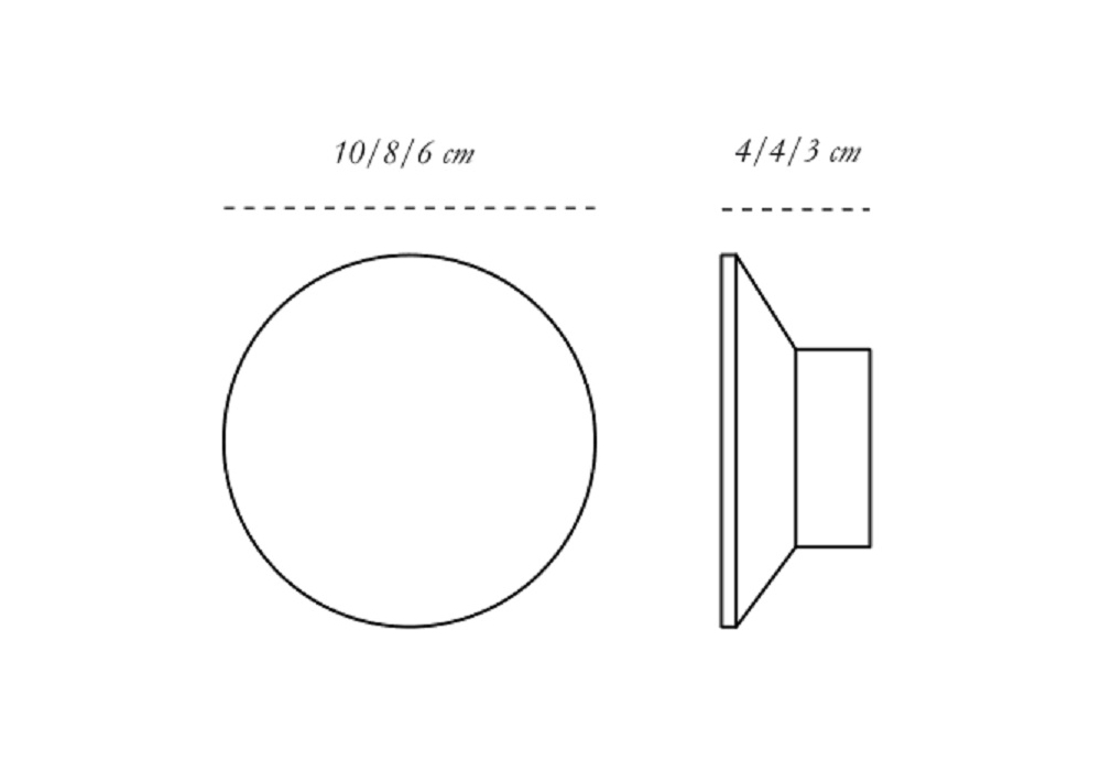 | Dimensioni | Ø 10 x 4 cm; Ø 8 x 4 cm; Ø 6 x 3 cm. |