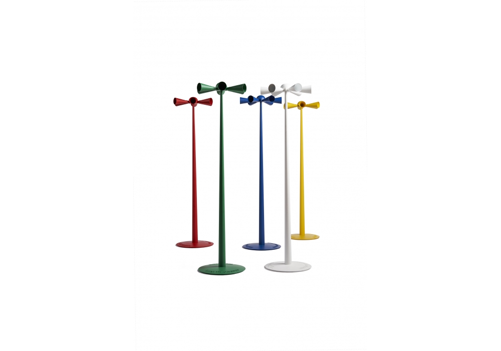 Cessato Allarme firmato da De Pas, D'Urbino, Lomazzi per Poltronova è un appendiabiti realizzato con base e testa in alluminio da fusione, fusto in ferro, coni in alluminio, finitura in vernice a base d’acqua. Disponibile in diverse finiture.