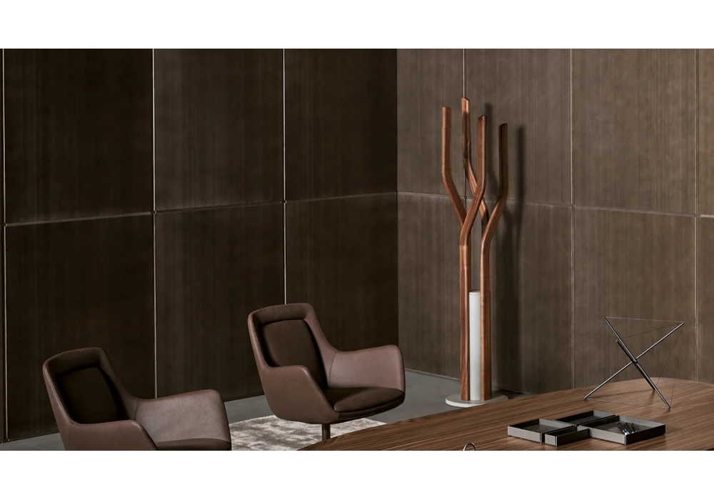 Alma firmato da Spazioameno per Bonaldo è un appendiabiti composto da rami in legno massello finitura noce Americano, base e colonna centrale in cemento, in diverse finiture.