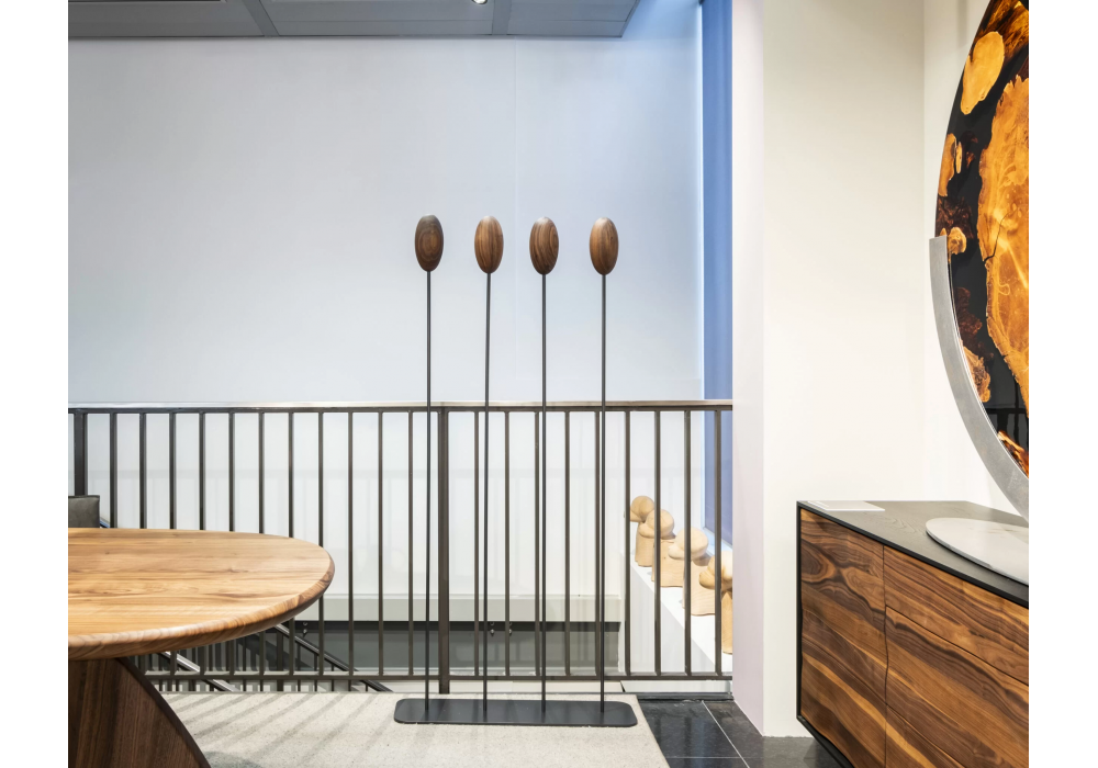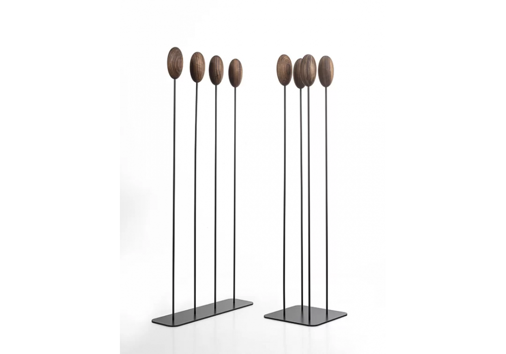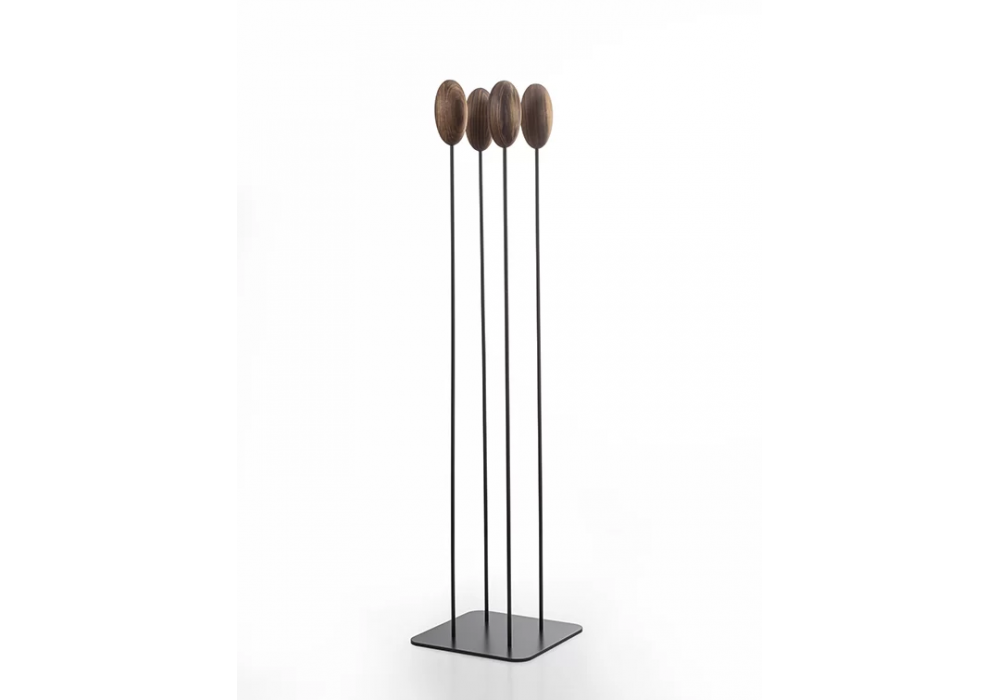 Harry firmato da Carlesi Tonelli per Riva 1920 è un appendiabiti con basamento e sostegni centrale verticali flessibili in ferro sormontati da un uovo realizzato in legno massello a liste incollate, che va a sostituire i classici ganci. Disponibile in due versioni: con basamento quadrato o rettangolare.