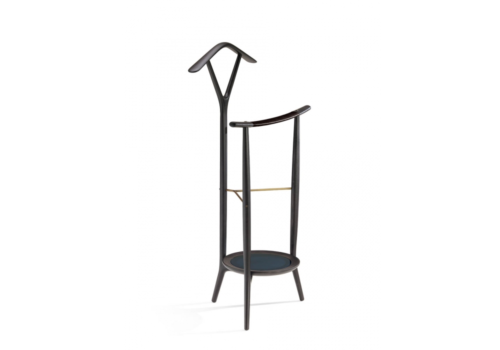 Duo firmato da Roberto Lazzeroni per Poltrona Frau & Ceccotti Collezioni è un servomuto realizzato in legno massello di frassino, ha una struttura a tre gambe composta da un montante posteriore che si divide a V e sostiene un appendiabiti, e da due montanti anteriori che sostengono un porta-pantaloni leggermente curvo, dalla linea simile alla forma di un'antica katana giapponese.