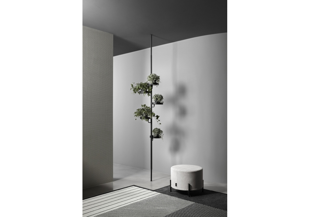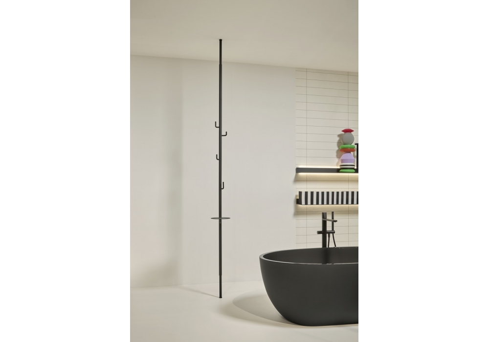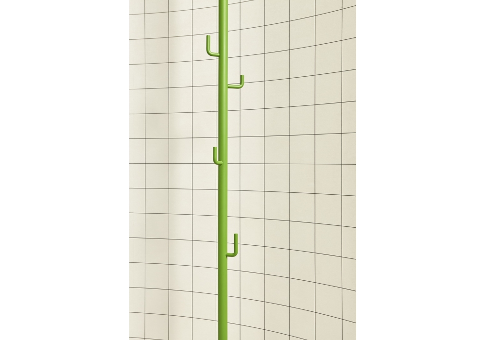 Cactus firmata da Brian Sironi per Antonio Lupi è un'asta appendiabiti terra/soffitto in acciaio verniciato. Le prolunghe terminali sono sempre nere goffrate e regolabili in altezza mentre il corpo centrale è disponibile nella versione bianco opaco o colorato ed è completo di cinque ganci portabiti. Contenitori svuotatasche in acciaio verniciato e specchio con telaio in acciaio, opzionali.