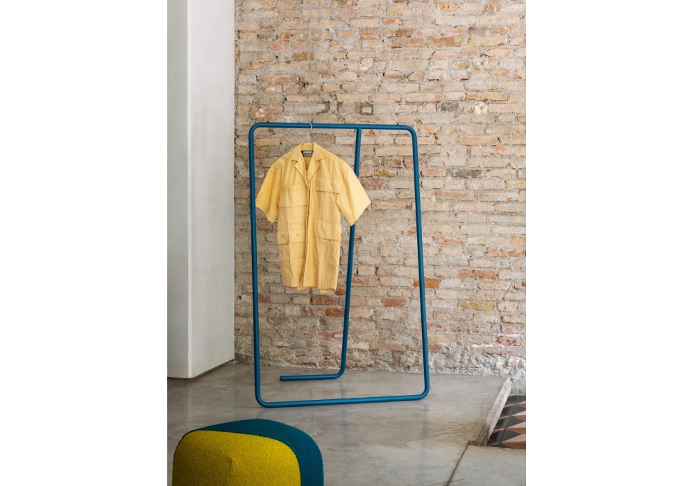 Caio firmato da Paolo Cappello per Miniforms è un appendiabiti che assolve alla comoda funzione portagrucce. È realizzato completamente in tubo d’acciaio verniciato.