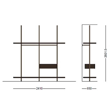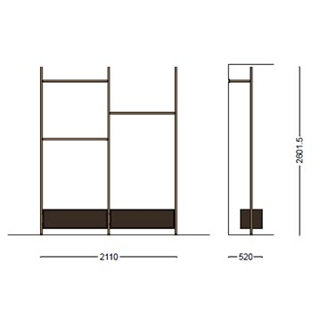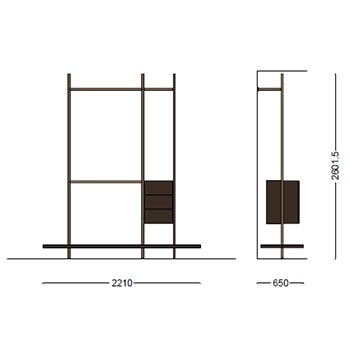 Boutique Mast firmato da Piero Lissoni per Porro è un guardaroba modulabile con mensole e moduli in legno disponibile in diverse finiture. Montante e aste in iron o ottone brunito. Disponibile in diverse configurazioni.