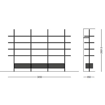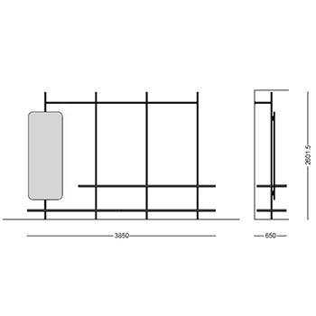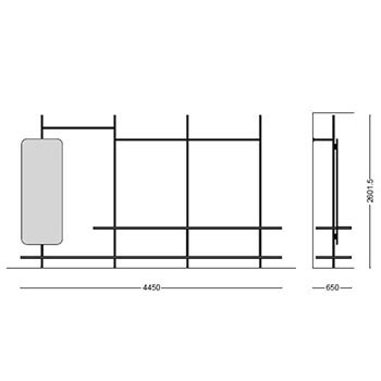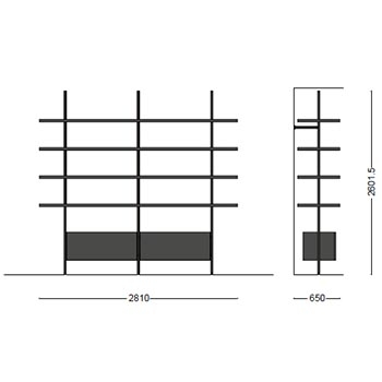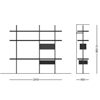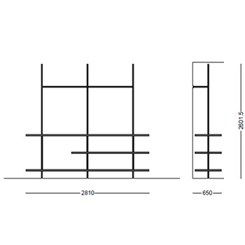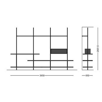 | Materiali di costruzione | Mensole e moduli in legno; montante e aste in iron o acciaio brunito |