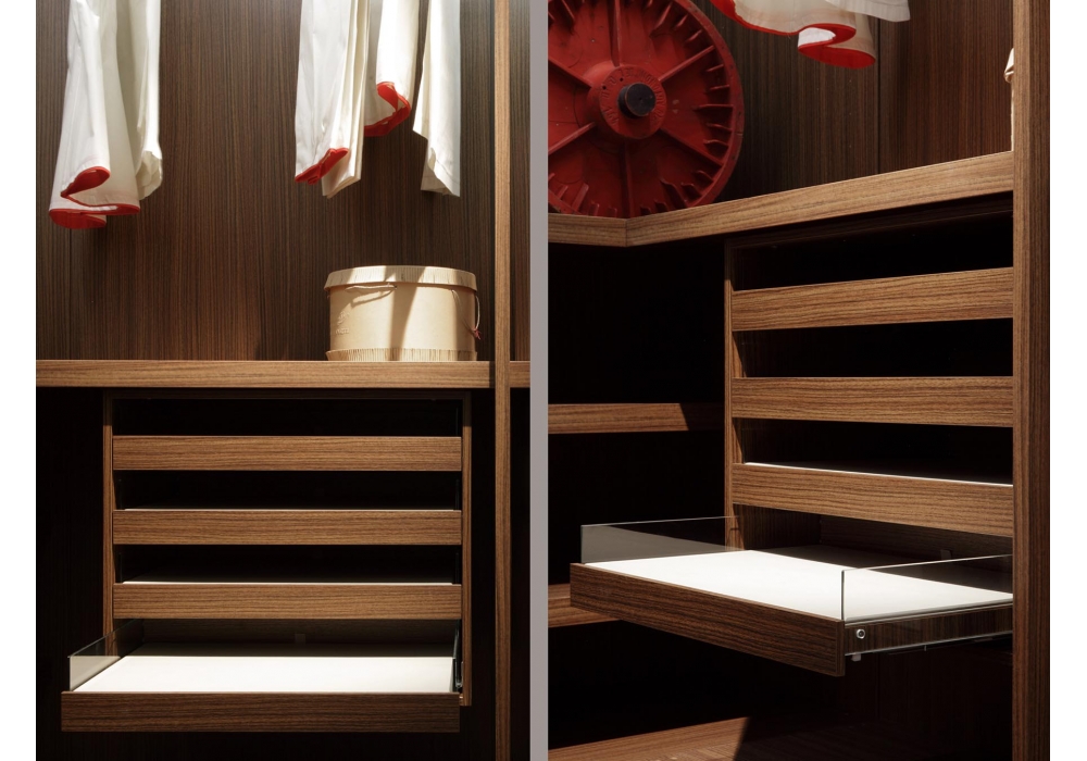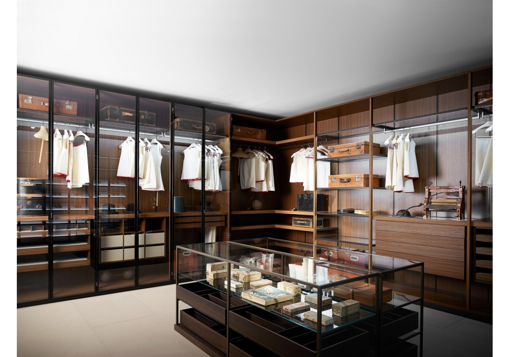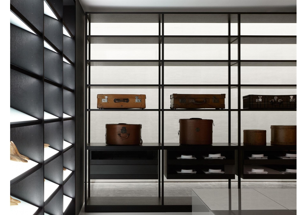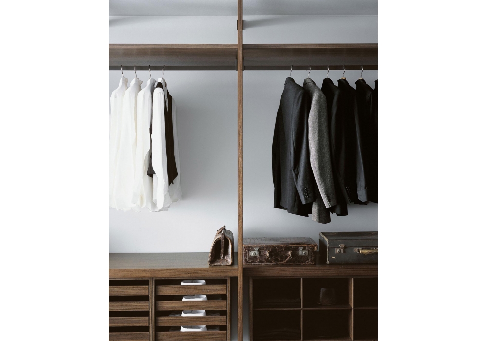 Storage firmato da Piero Lissoni + Centro Studi Porro per Porro è una cabina armadio componibile in legno. È completamente personalizzabile con elementi, cassetti, portapantaloni e molti altri accessori.