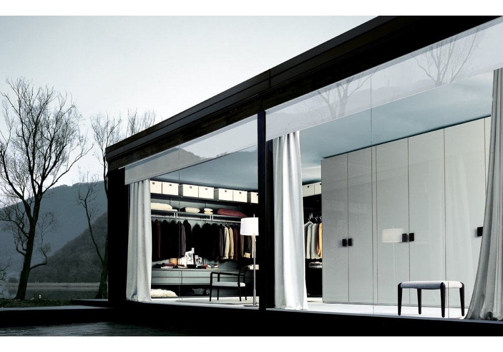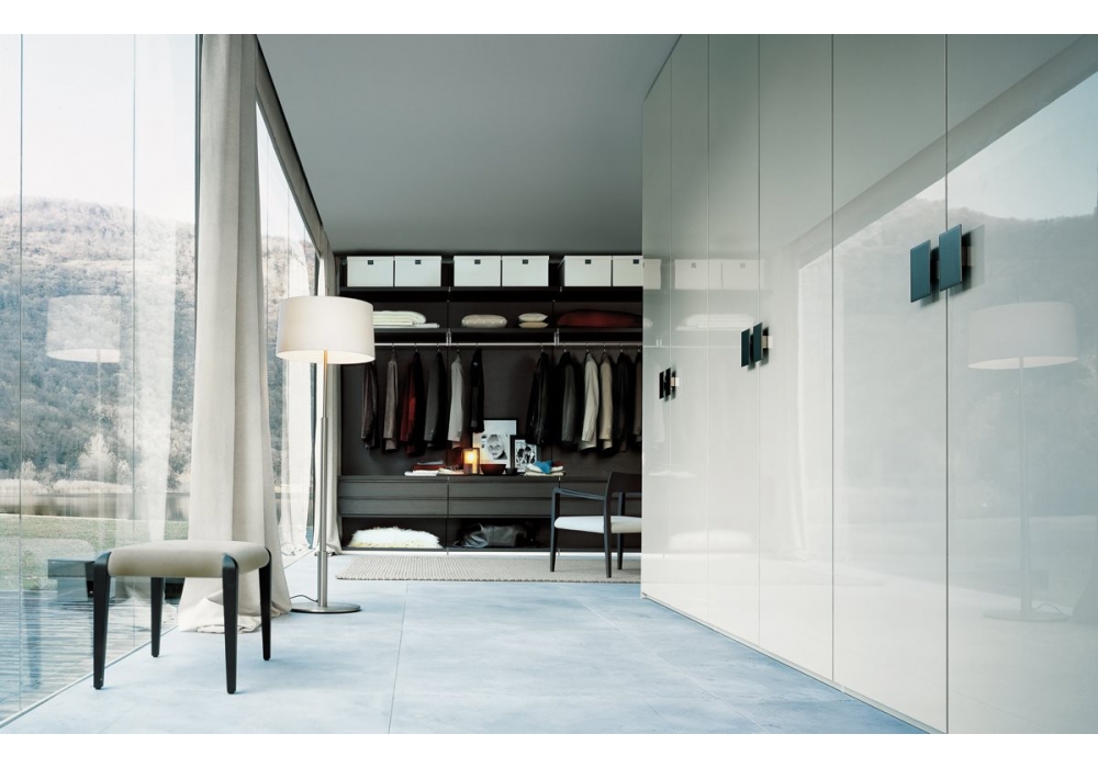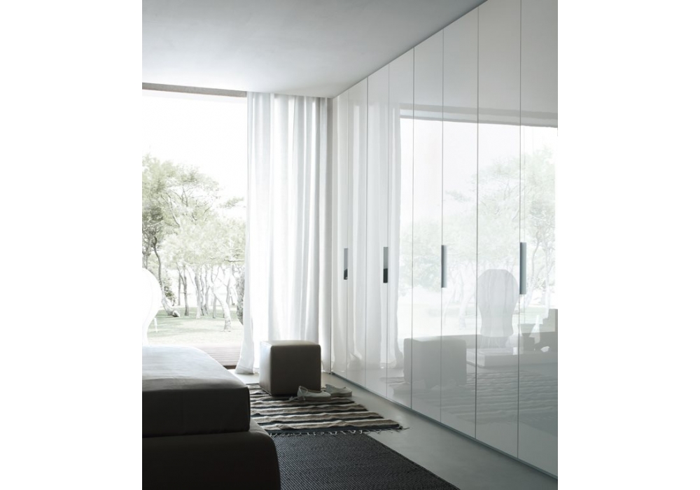 New Entry firmata da R&D Poliform è un armadio con ante in rovere, noce, olmo nero o laccate.