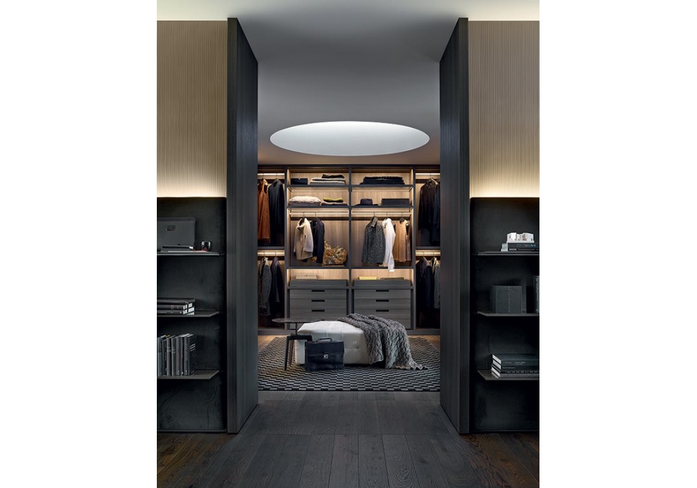 Senzafine firmata da R&D Poliform è una cabina armadio dall'eccezionale personalizzazione estetica e funzionale.