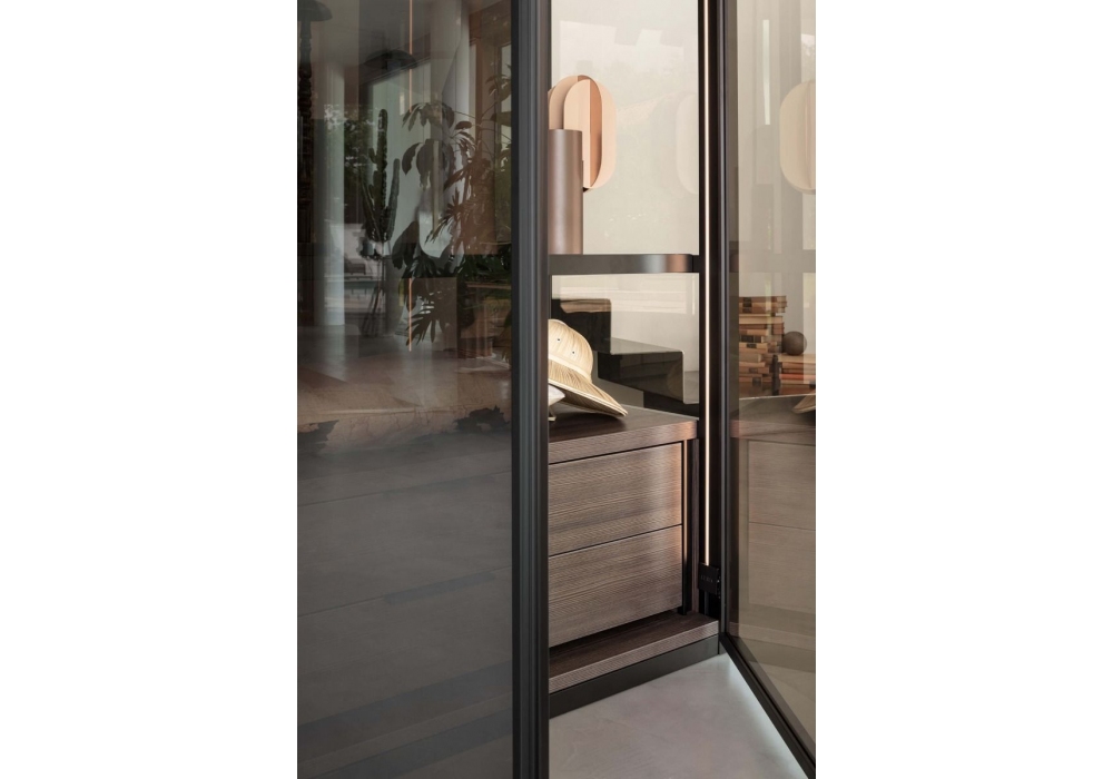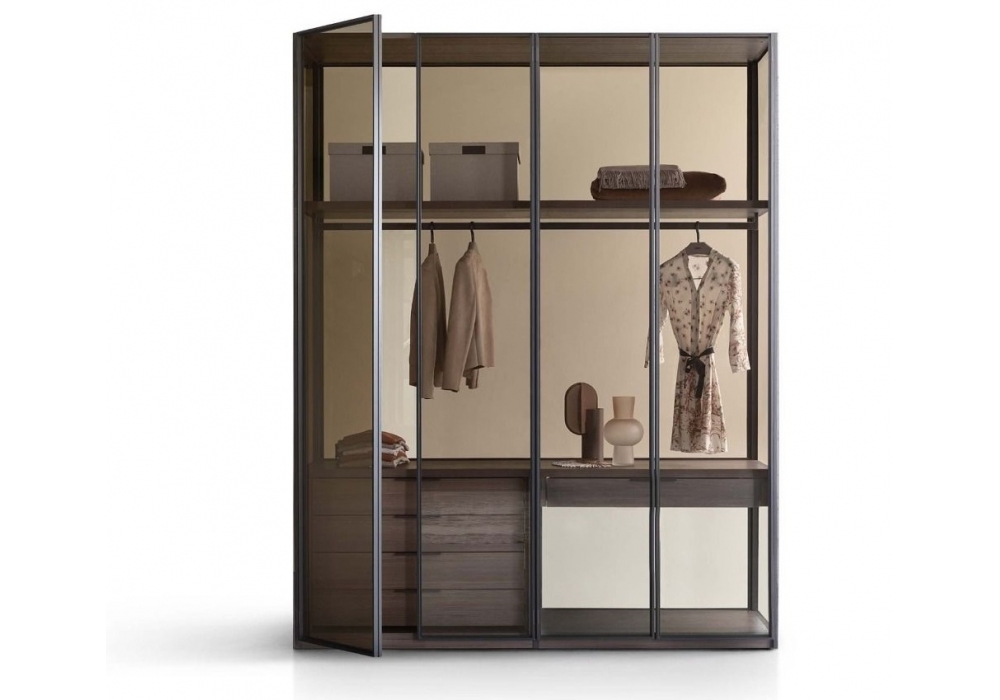 Tian firmata da Lema è una cabina armadio modulare interamente in vetro, può essere abbinata alle ante a battente Dandy oppure proposto anche in versione Open, senza ante. Gli interni vantano un’ampia scelta di accessori opzionali tra cui la luce a LED, con dimmer sui montanti verticali anteriori.