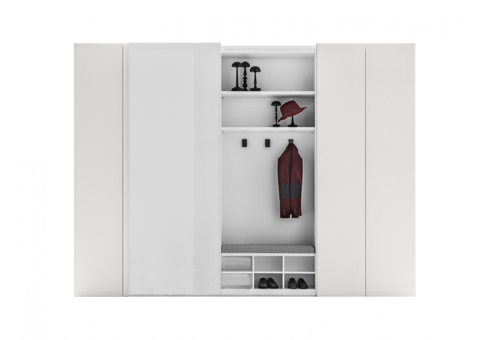 Core firmato da R&D Caccaro per Caccaro è un armadio con apertura scorrevole, può essere progettata su tutta la larghezza della composizione o solo per una parte. Disponibile in differenti finiture e dimensioni.