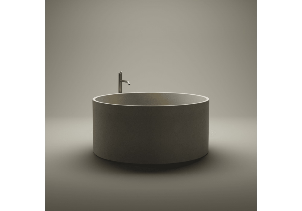 In-Out firmata da Benedini Associati per Agape è una vasca da bagno in cemento per esterni con invaso tondo in Cementoskin in differenti finiture. Troppo pieno integrato nella piletta cromata. Non sono presenti fori per rubinetteria.