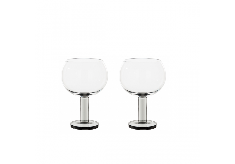 Puck Balloon firmato da Tom Dixon è un set composto da due bicchieri realizzati in vetro soffiato con leggera sfumatura di colore fumo.