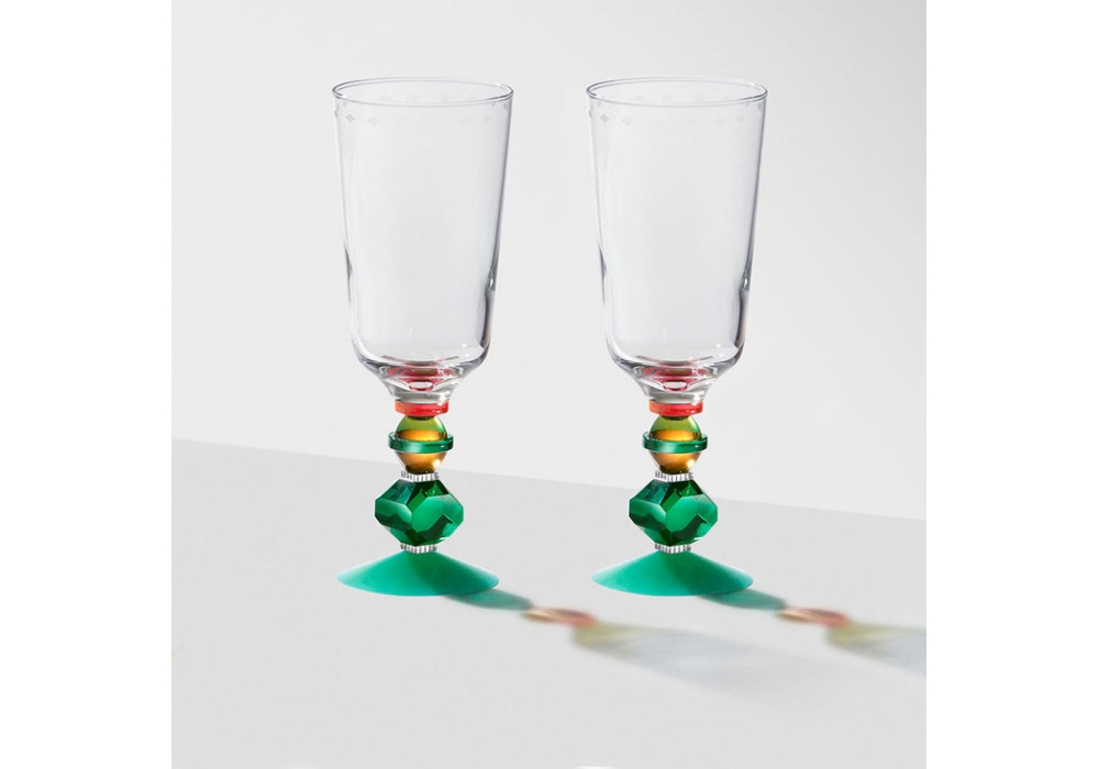 Mayfair prodotto e firmato da Reflections Copenhagen è un bicchiere in cristallo di colore trasparente, smeraldo , cobalto, marrone e menta.
