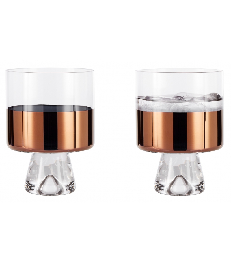 Tank Low Ball firmato da Tom Dixon è un set composto da due bicchieri realizzati in vetro soffiato decorati con dettagli disponibili nelle finiture rame o nero.