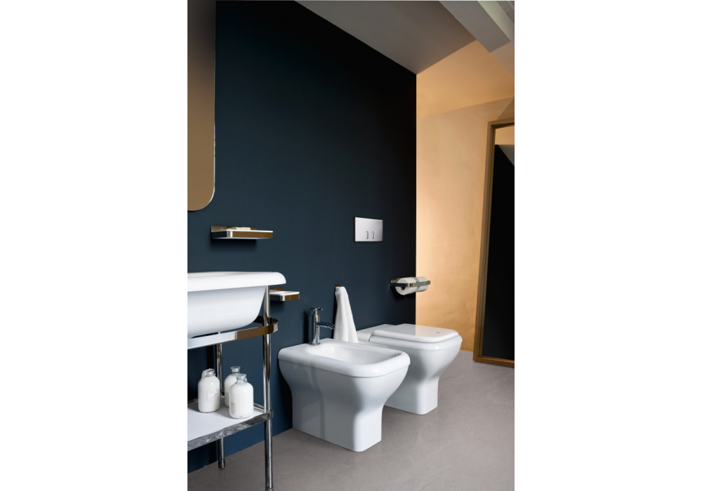 Memory firmato da Benedini Associati per Agape è un bidet da appoggio realizzato in ceramica bianca o bicolore, con foro per rubinetteria. Dispone di foro per troppo pieno con ghiera in acciaio inox lucido e kit di fissaggio.