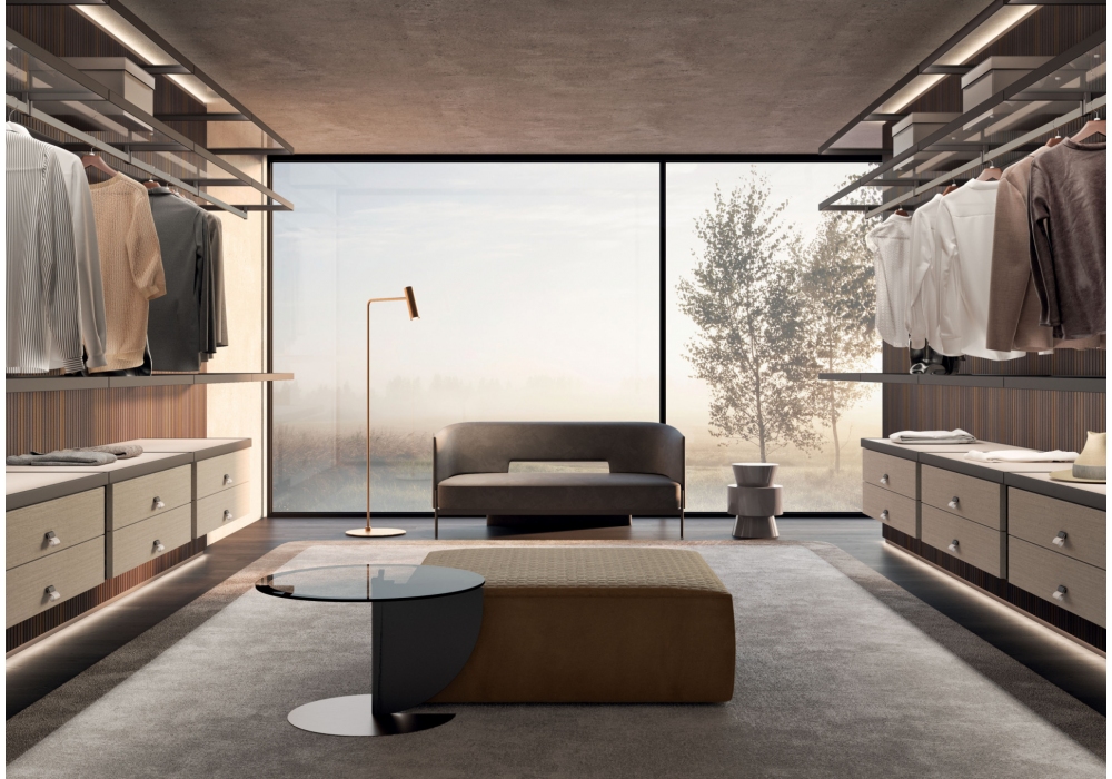 Palo Alto Wall firmato da Gianni Borgonovo per MisuraEmme è un sistema notte a boiserie, in legno. Rappresenta l’elemento distintivo di una zona notte esclusiva, funzionale e sofisticata, con l’eleganza dello stile inconfondibile espresso in ogni dettaglio. La completa integrabilità della struttura portante con i sistemi di cabine armadio Palo Alto Free e Palo Alto I-Box apre un ventaglio infinito di possibilità d’arredo e permette di creare un ammaliante dialogo fra materiali di qualità impareggiabile. Vetro e legno, trasparenza e materia, si alternano in un irresistibile gioco di luci e consistenze. Il prestigio dei materiali può essere ulteriormente esaltato installando esclusive luci al led, grazie alla struttura a cremagliera elettrificata.