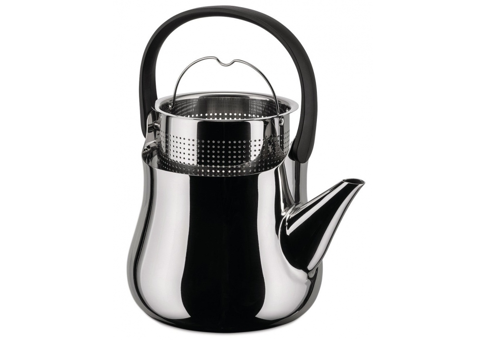 Cha firmato da Naoto Fukasawa per Alessi è un bollitore/teiera realizzato in acciaio inossidabile 18/10 con manico in resina termoplastica nera. Fondo in acciaio magnetico adatto alla cottura a induzione.