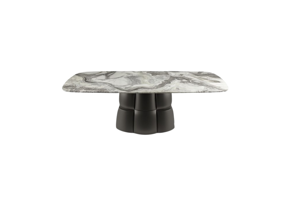 Palazzo firmato da Matilde Sessolo per Bonaldo è un tavolo con piano in marmo in varie finiture lucide o opache e base in poliuretano ad alta densità.