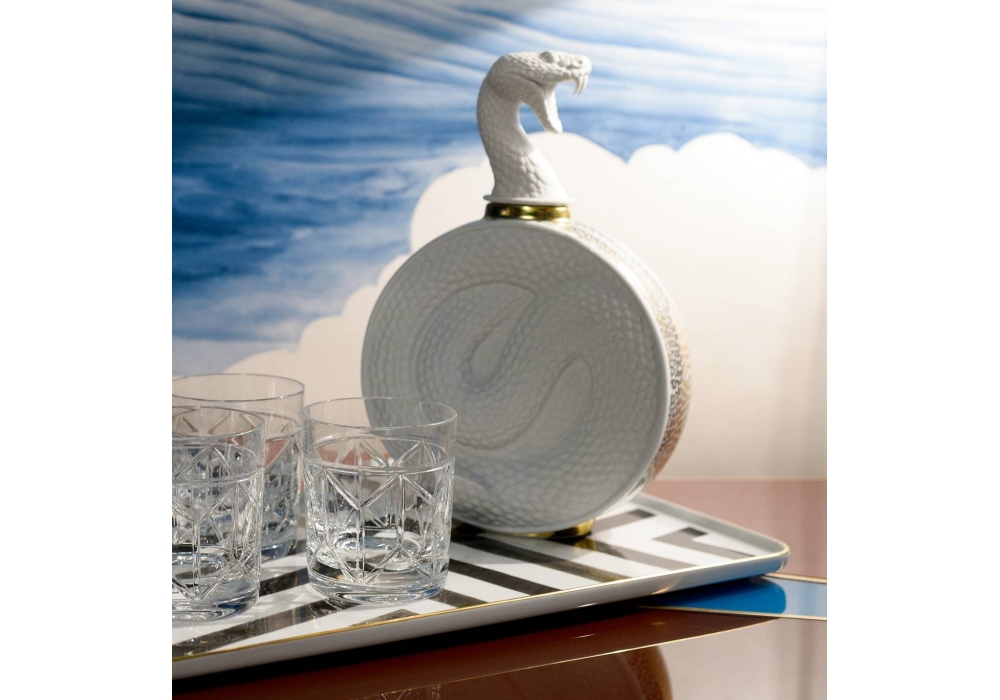 Poison firmata da Vista Alegre è una bottiglia realizzata in porcellana con dettagli in oro.