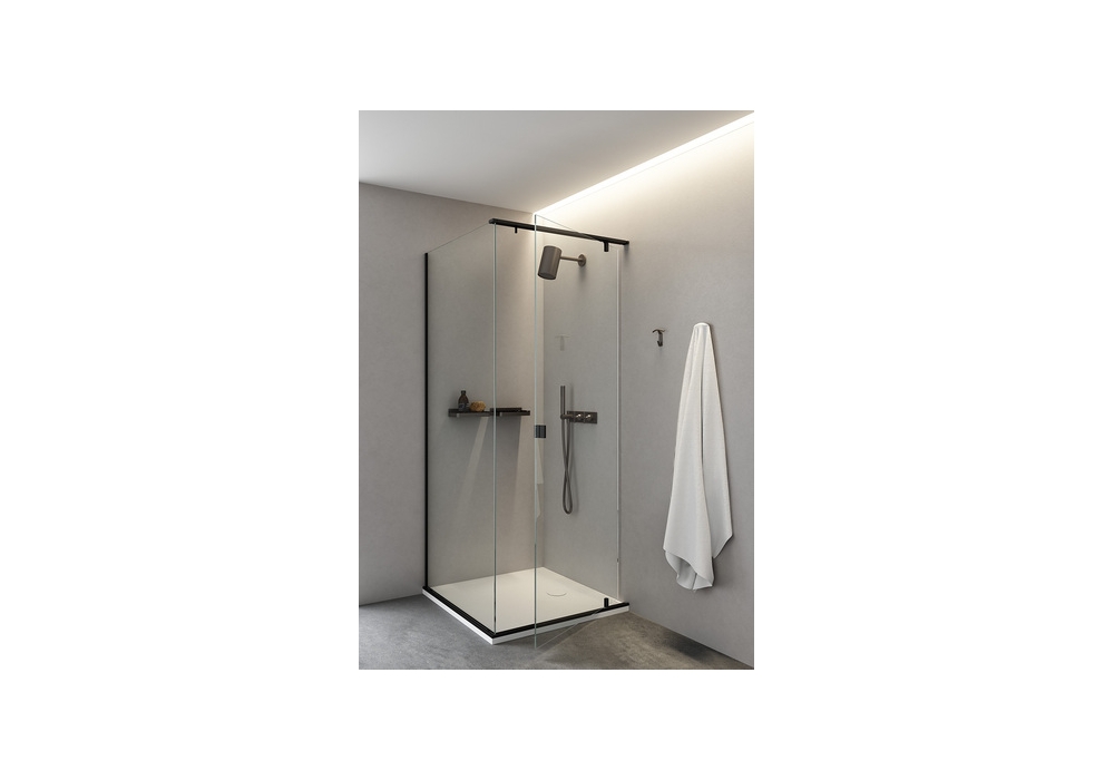 Plan-a firmata da Giulio Gianturco & Mario Tessarollo per Agape è un box doccia in vetro trasparente extrachiato o fumè, sostenuto da elementi in alluminio anodizzato spazzolato naturale o nero. Plan-a è predisposto per essere installato su pavimento o qualsiasi tipo di piatto doccia. Disponibile per docce in nicchia o ad angolo. È possibile l’acquisto della sola ferramenta.