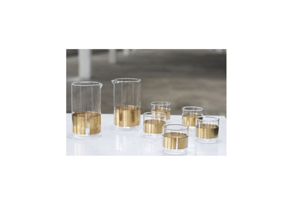 Chemistry firmato da Niels Datema per Serax è una caraffa, di forma cilindrica realizzato in vetro, con fodero decorativo in rame.