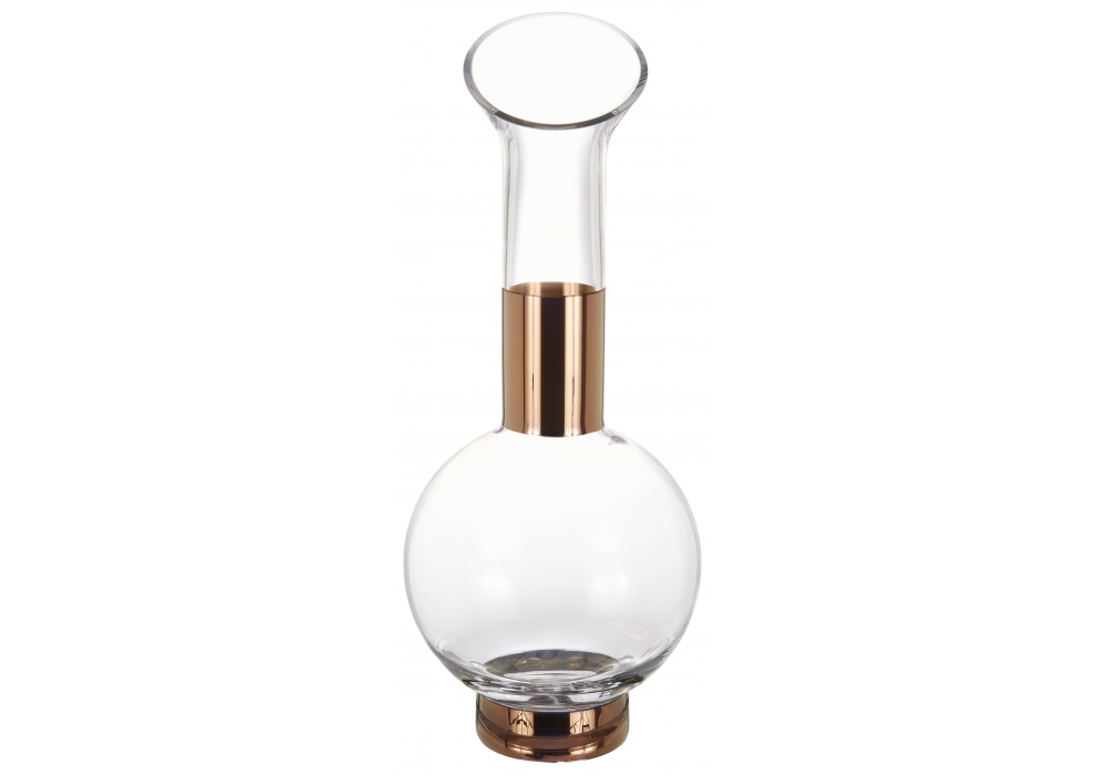 Tank firmata da Tom Dixon è una caraffa realizzata in vetro soffiato trasparente, decorata con dettagli disponibili nelle finiture rame o nero.