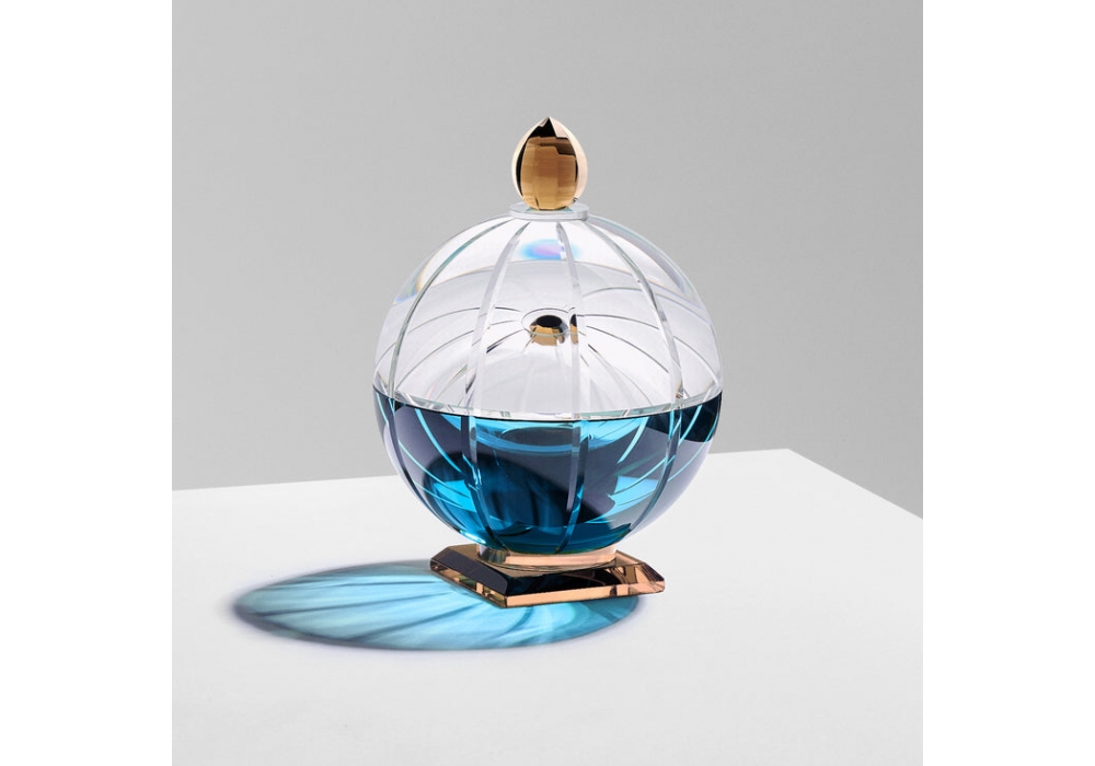 Rebecca prodotta e firmata da Reflections Copenhagen è una candela profumata con struttura in cristallo di colore rosso, trasparente, azzurro, trasparente e marrone.