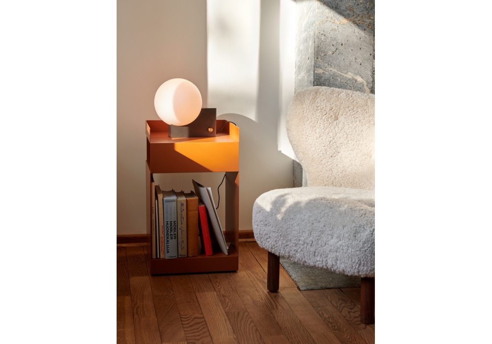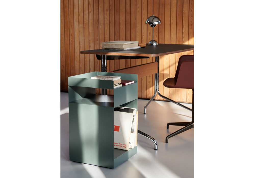 Rotate firmato da Space Copenhagen per &Tradition è un carrello funzionale realizzato in acciaio verniciato a polvere. Può essere utilizzato come carrello da ufficio, come comodino o come contenitore per il bagno.