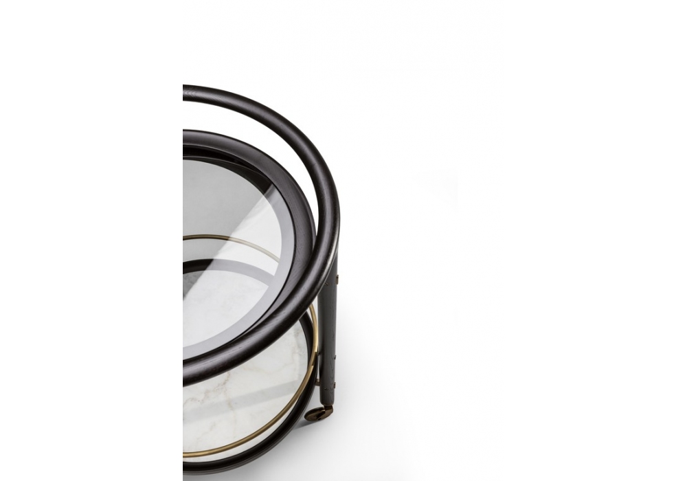 Duo Trolley disegnato da Roberto Lazzeroni per Poltrona Frau & Ceccotti Collezioni è un carrello composto da struttura in massello di frassino, piano in vetro e ripiano inferiore in marmo o vetro retro-verniciato.