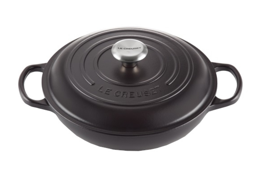 Tegame Basso Rotondo Evolution 30 disegnata da Le Creuset è una casseruola rotonda bassa in ghisa disponibile in diversi colori, interno colore nero.