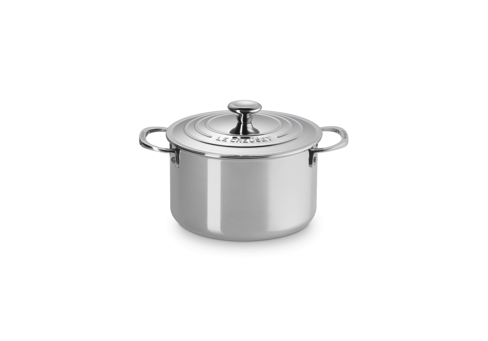 Casseruola Alta con Coperchio 20 disegnata da Le Creuset è una casseruola alta in acciaio inossidabile con coperchio.