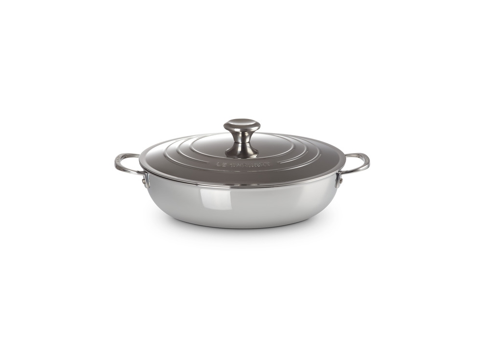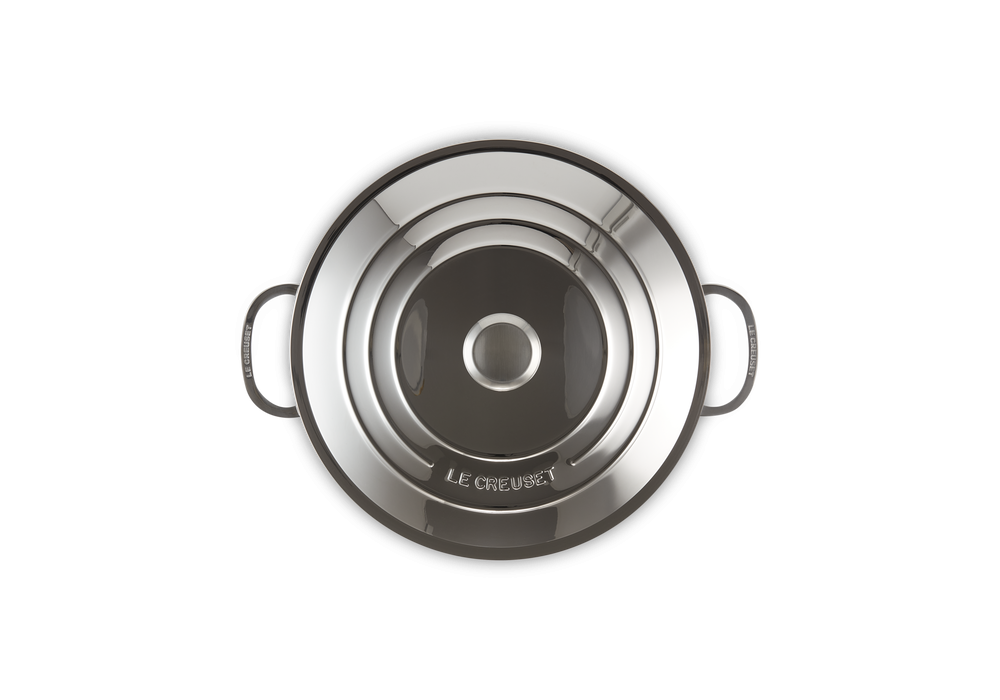 Tegame Basso con Coperchio 30 disegnato da Le Creuset è un tegame basso in acciaio inossidabile con coperchio.