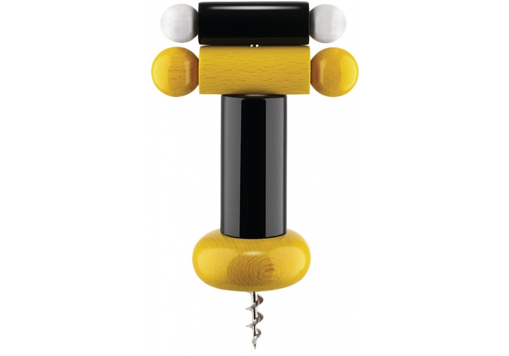 ES17 firmato da Alessandro Mendini per Alessi è un cavatappi in legno di faggio. Disponibile in 3 combinazioni di colori.