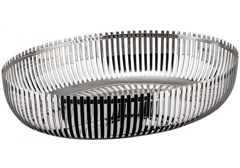 PCH06 firmato da Pierre Charpin per Alessi è un cestino ovale realizzato in acciaio inossidabile 18/10.