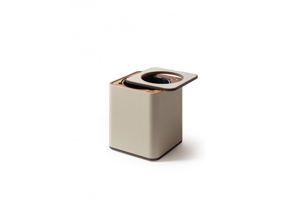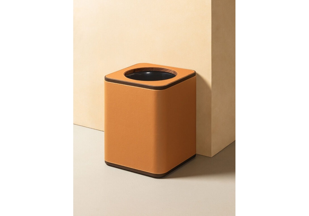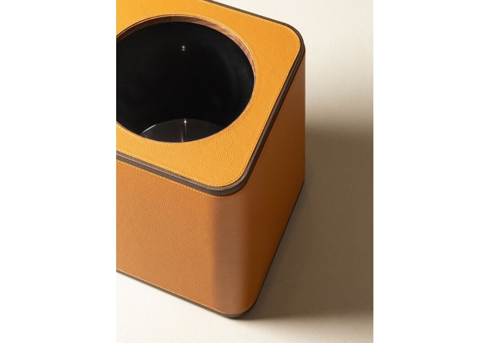 Office Collection firmato da Giobagnara per Poltrona Frau è un cestino per carta con struttura di forma quadrangolare in legno rivestito in Pelle Frau® con coperchio removibile. Office Collection è disponibile in differenti finiture di pelle.
