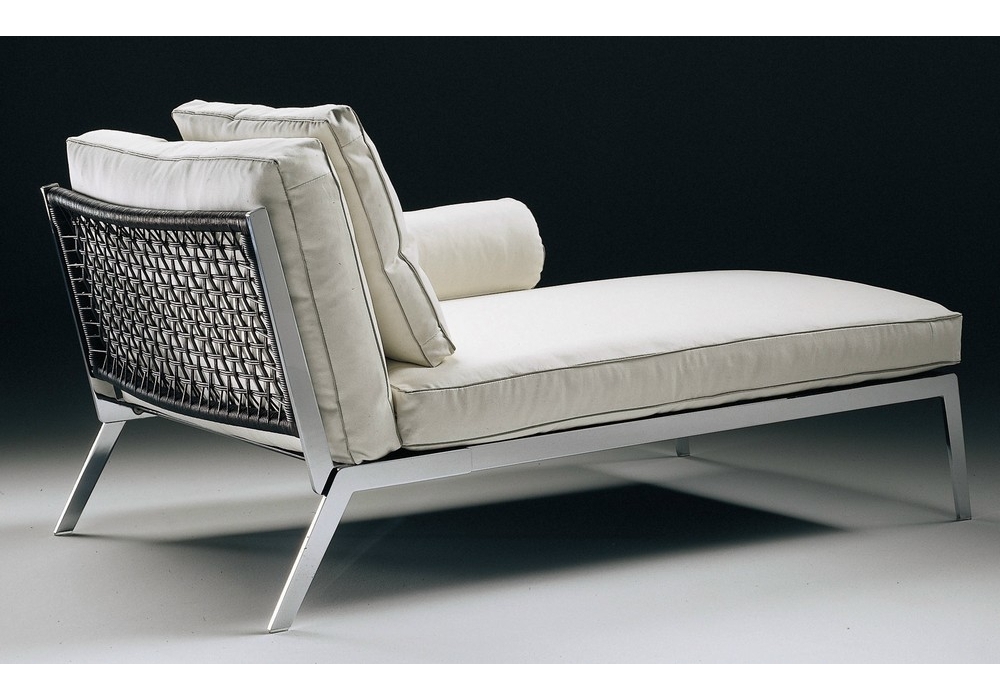 Happy è una chaiselongue disegnata da Antonio Citterio per Flexform. Telaio seduta in metallo rivestito in cuoio con materassino in dacron. Schienale in metallo e cordoncino di cuoio intrecciato. Cuscino seduta in piuma con supporto interno in materiale indeformabile.