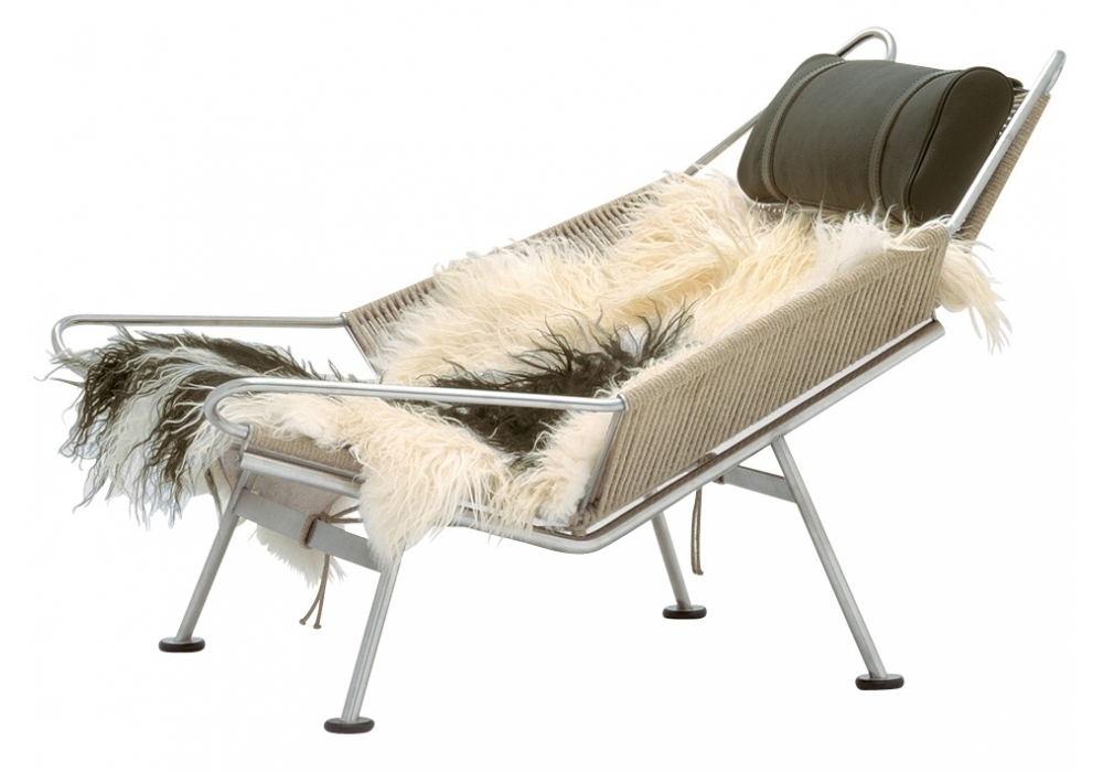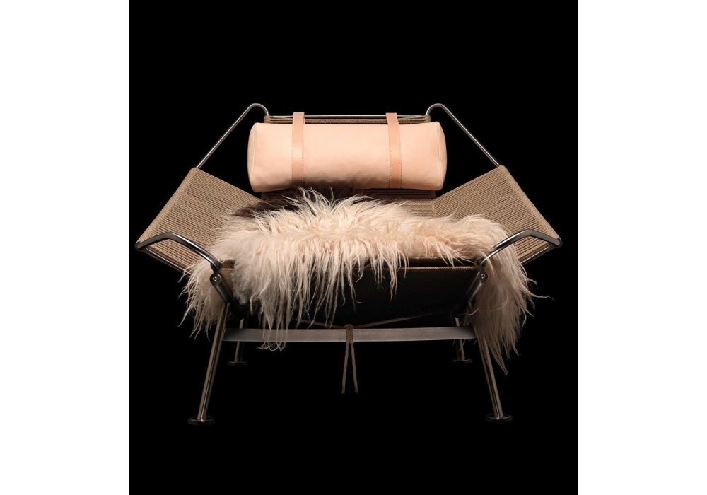 PP225 Flag Halyard Chair, firmata da Hans J. Wegner per PP Møbler è una chaise longue con seduta in lino naturale o tinto nero, poggiatesta rivestito in tessuto o pelle con cinghie in cuoio. La PP225 è fornita di uno sheepskin per un comfort maggiore. Selezionate il vostro sheepskin cliccando il seguente link www.pp.dk/static/skind e comunicate il codice scelto al nostro custumer service.