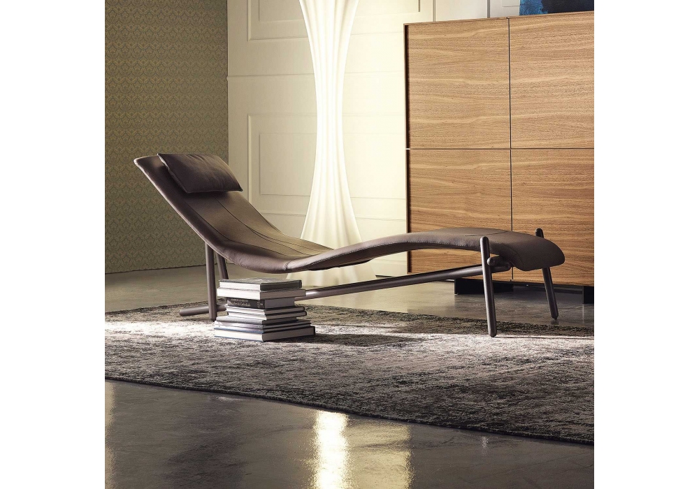 Donovan firmata da Giuseppe Viganò per Cattelan Italia è una chaise longue con base in acciaio e scocca imbottita. Rivestimento disponibile in pelle, ecopelle o tessuto.