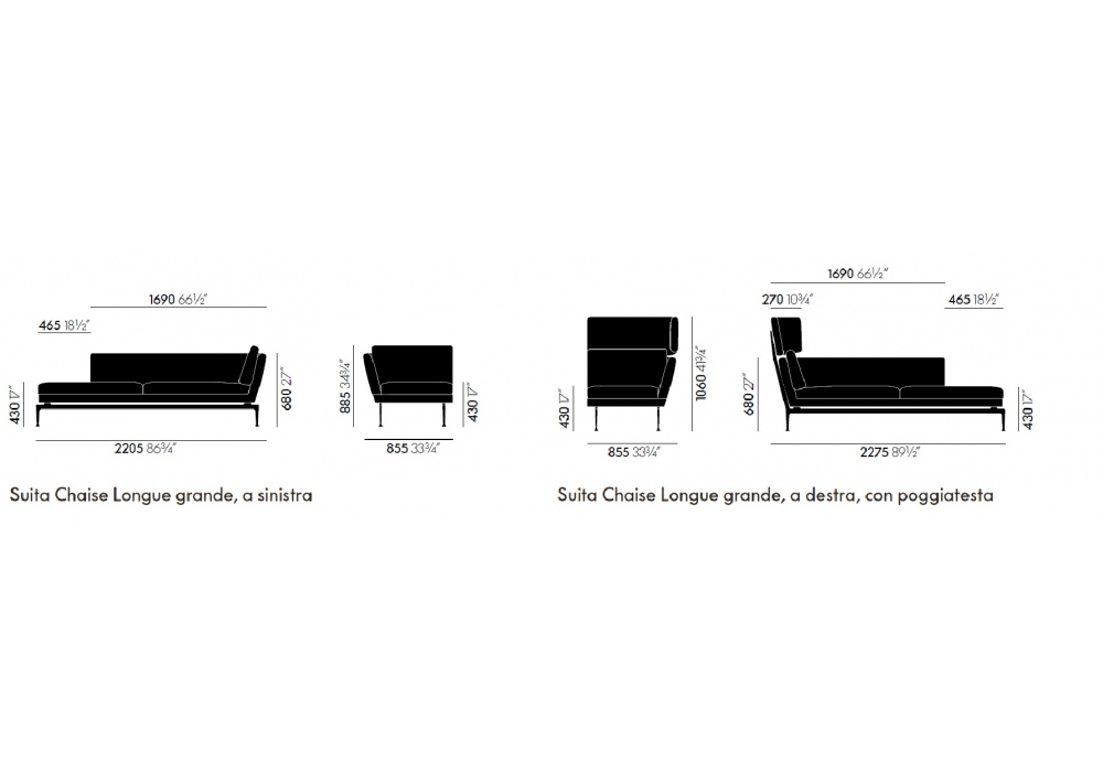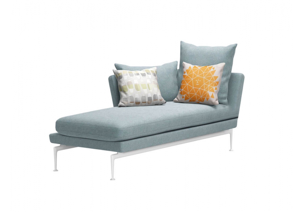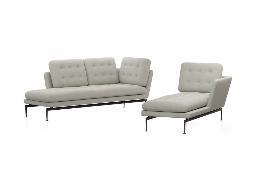 Suita firmato da Antonio Citterio per Vitra è una chaise lounge disponibile nella versione con cuscini classici, con cuscini schienali a punta e schienale capitonnè. Opzione dell'aggiunta del poggiatesta alto. Il divano ha una base in alluminio pressofuso con finitura lucida o verniciata a polvere, la struttura è rivestita in tessuto.
