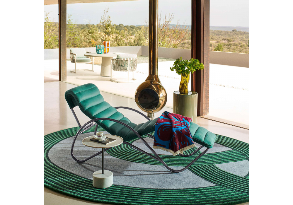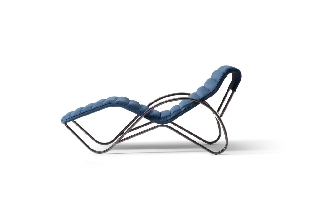 Indochine 546 firmata da Patricia Urquiola per Cassina è una chaise longue con materassino imbottito e rivestito in tessuto o in pelle e struttura in metallo verniciata. Disponibile in diverse finiture.