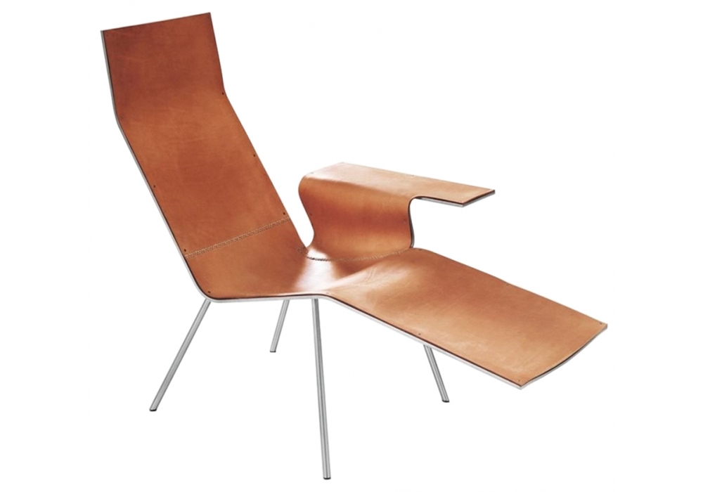 LL04 firmata da Maarten Van Severen per Porada è una chaise longue con struttura in acciaio inox tubolare AISI 304 spazzolato fine. La scocca è in cuoio pieno fiore conciato al vegetale tinto all’anilina color naturale o nero cucito a mano e fissato con viti in accaio inox.