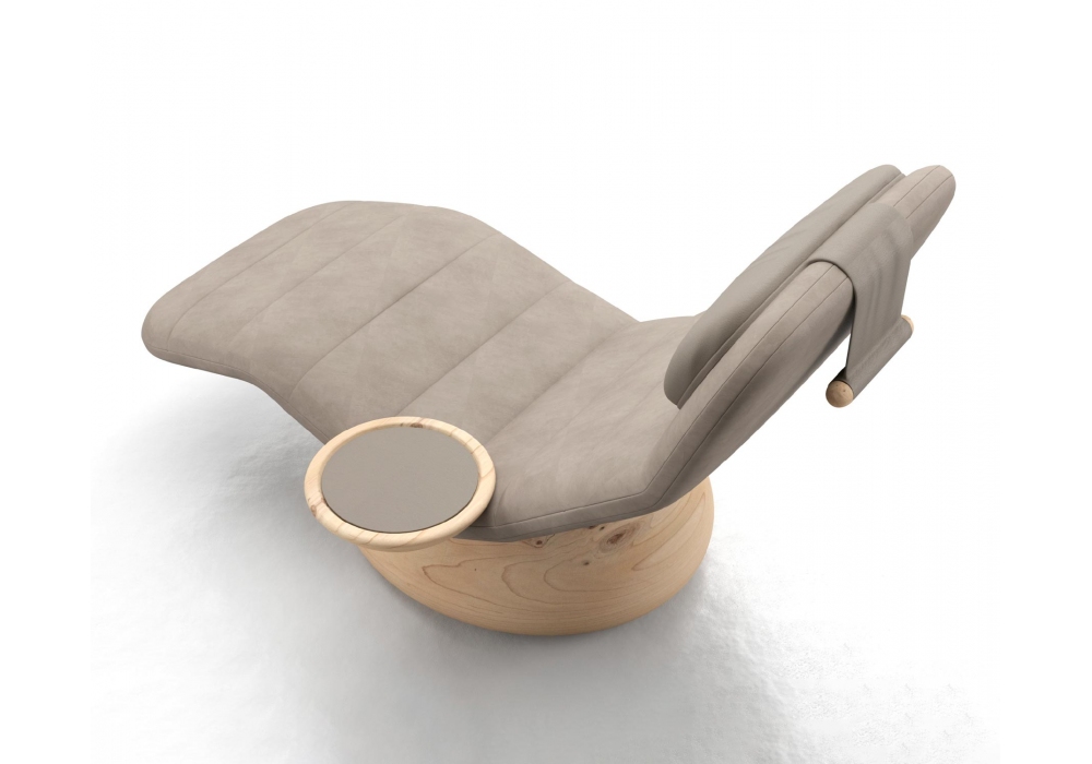 Totemica firmata da Claudio Bellini per Riva 1920 è una chaise longue imbottita con seduta ergonomica, presenta una base in legno , rivestita in pelle o tessuto. Disponibile in diverse finiture