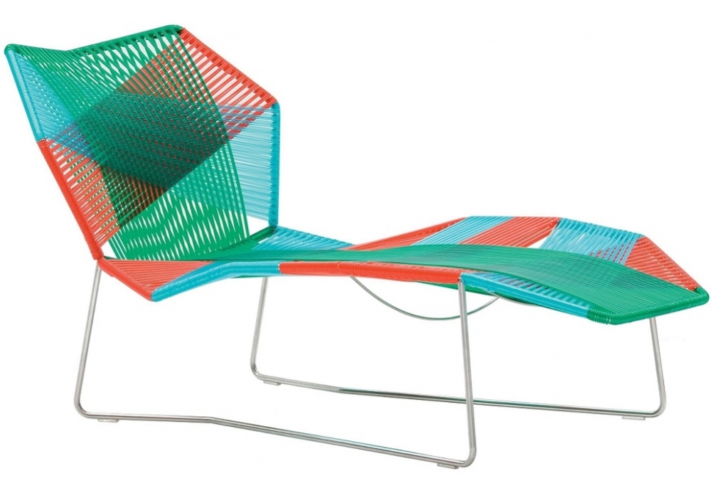 Tropicalia firmata da Patricia Urquiola per Moroso è una chaise longue con struttura in acciaio inox o verniciato in differenti finiture e sottopiedi in PVC. Seduta in filo tecnopolimero.