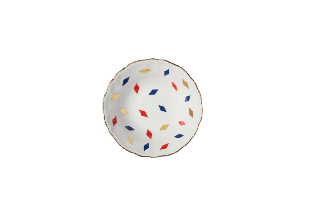 Fato firmata da design LaTigre per Bitossi Home è una ciotola in porcellana con decalcomania e dettagli dorati. Adatta alla lavastoviglie e a un massimo di 250 lavaggi. Non adatta al microonde.