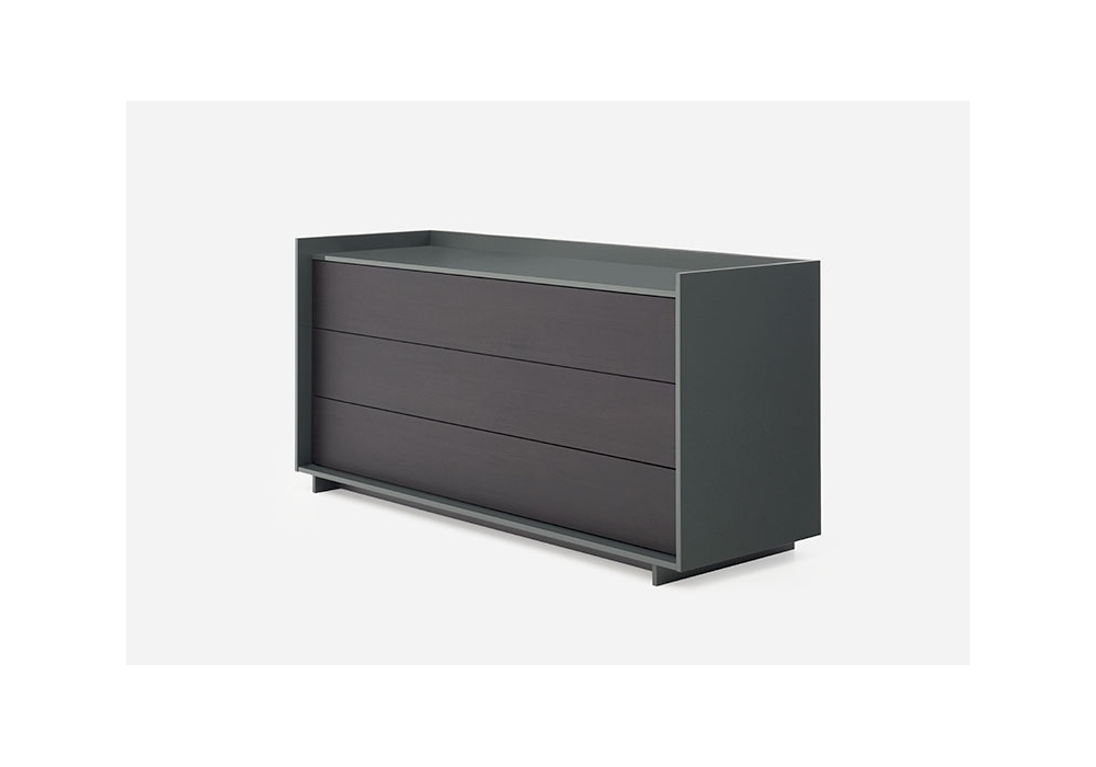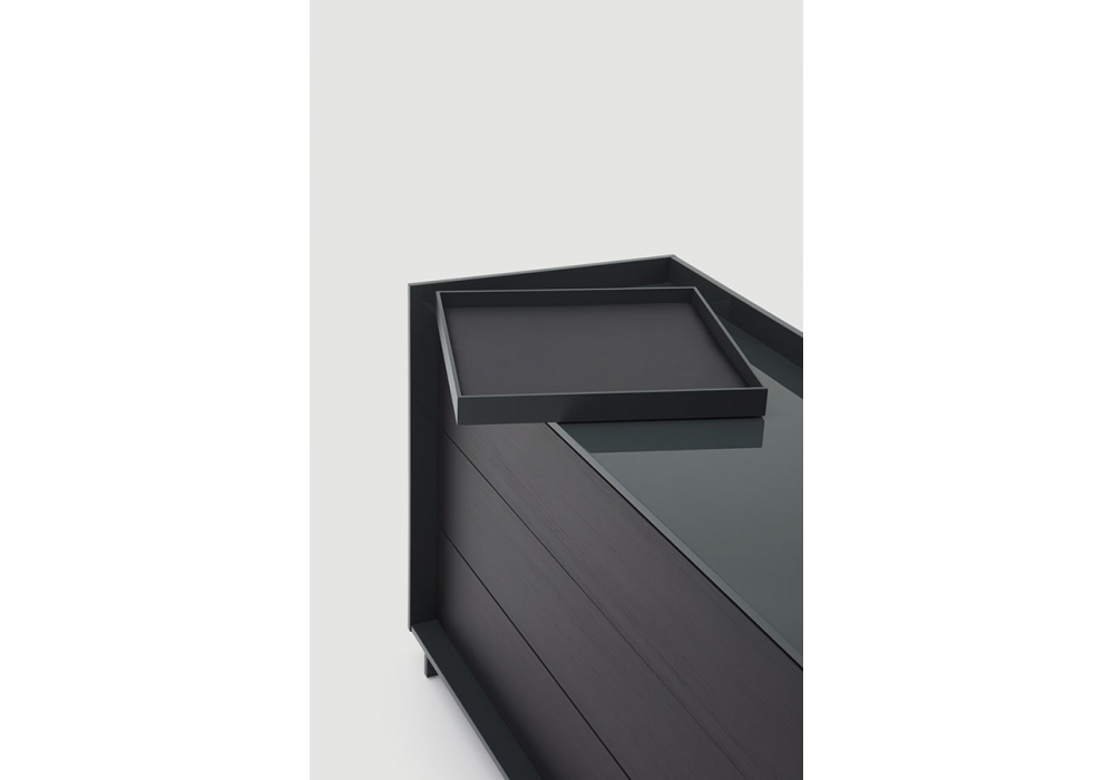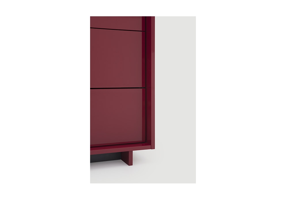 Kyoto firmato da Simone Bonanni per Pianca è un comò realizzato con pannelli in particelle di legno rivestiti in materiale sintetico laccato opaco o lucido oppure in piallaccio di legno in Essenza. Vassoio rivestito in pelle sintetica opzionale. Disponibile in diverse finiture e dimensioni.
