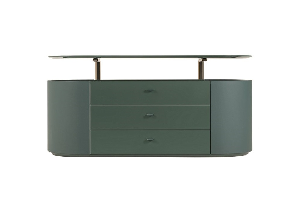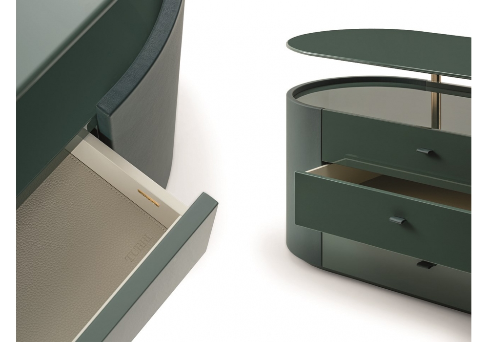 Roma firmata da Monica Armani per Turri è una cassettiera con struttura in MDF e multistrato in finitura laccata lucida con rivestimento struttura laterale in differenti pelli. Disponibile nel modello con quattro cassetti o con tre cassetti e un ripiano.