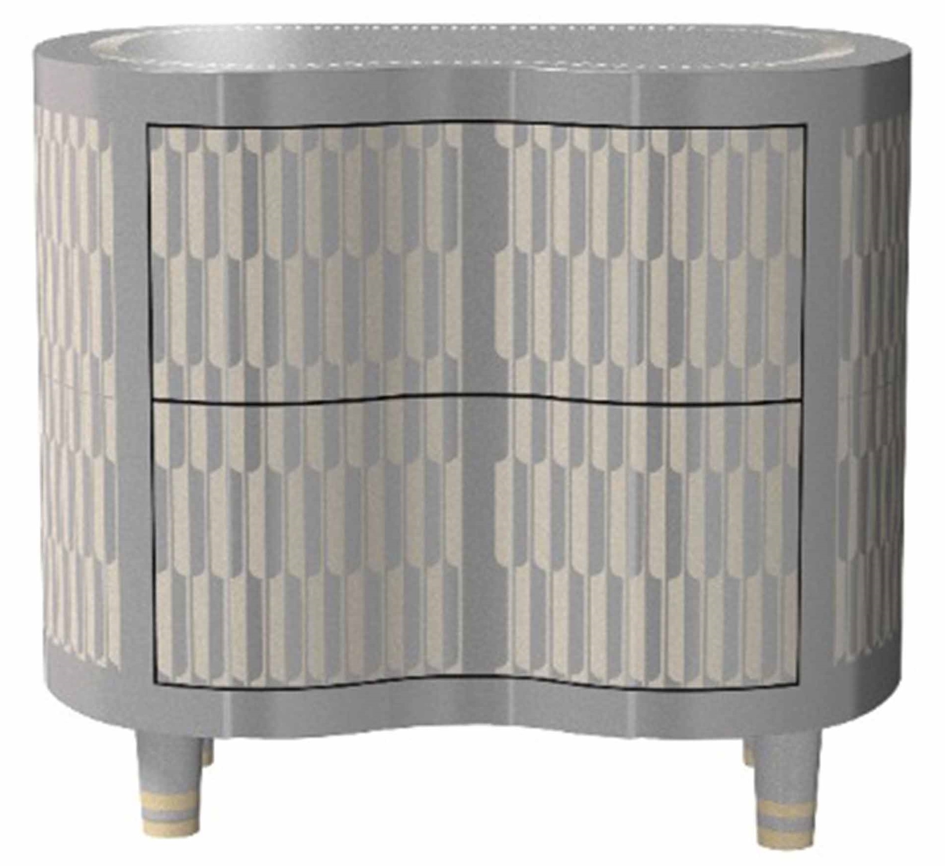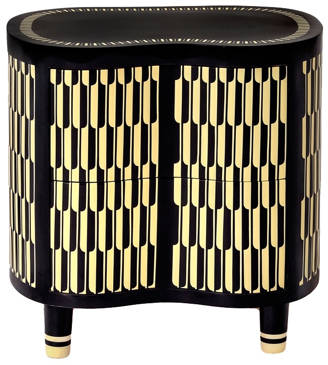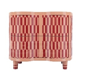 The Kid firmato da Matteo Cibic per Scarlet Splendour è un comodino realizzato in MDF, compensato e legno di teak, con intario in resina.