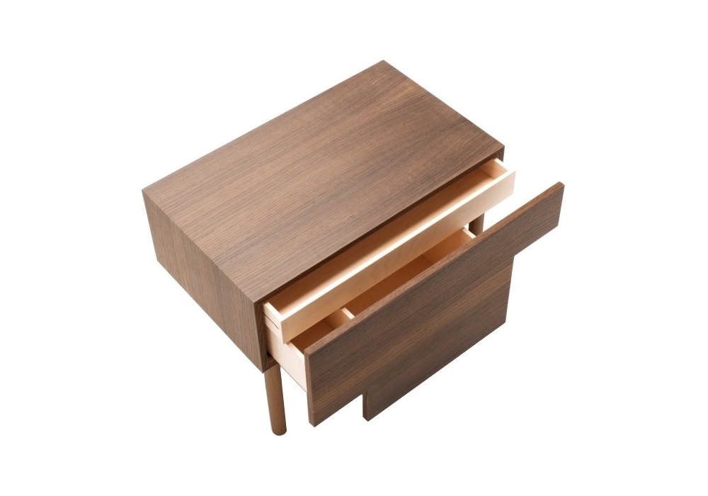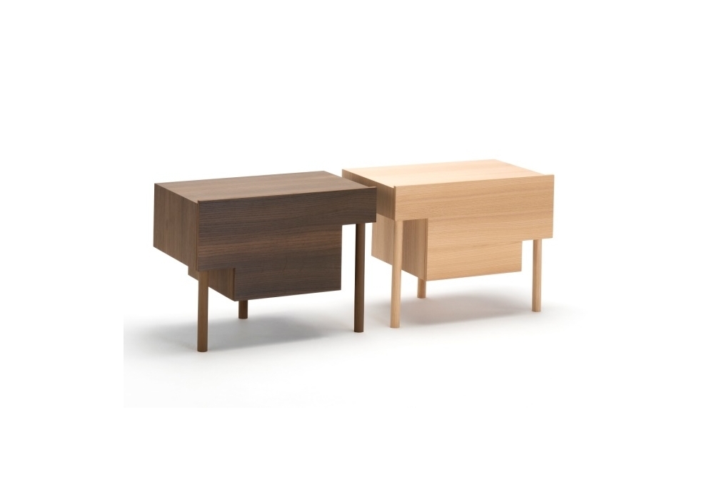 Stilt firmato da Marco Guazzini per Living Divani è un comodino dalla cifra progettuale fatta di attenzione per le forme, dettagli e memorie. Comodino con struttura portante realizzata a “folding” in MDF spessore 15mm impiallacciato olmo o rovere Thermo. Gambe a sezione cilindrica ø30mm in massello di rovere in 3 altezze diverse tra loro: 15, 25 e 35cm. Frontale unico in MDF spessore 15mm impiallacciato olmo naturale o rovere Thermo con cassetto a 2 comparti ad altezze e capienze differenti e vassoio interno “svuota tasche”, in betulla naturale. I cassetti sono estraibili tramite guide Blum®.
